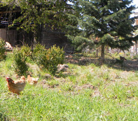 chovame na dedine sliepky vo volnych vybehoch v krasnom prostredi .